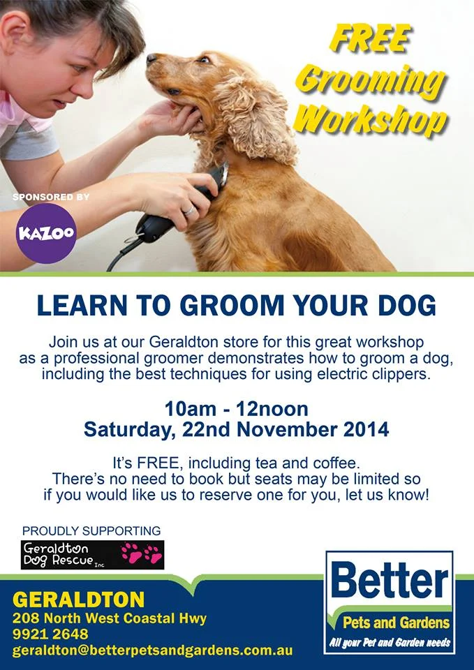 Join us at our Geraldton store for this great workshop as a professional groomer demonstrates how to groom a dog, including the best techniques for using electric clippers.