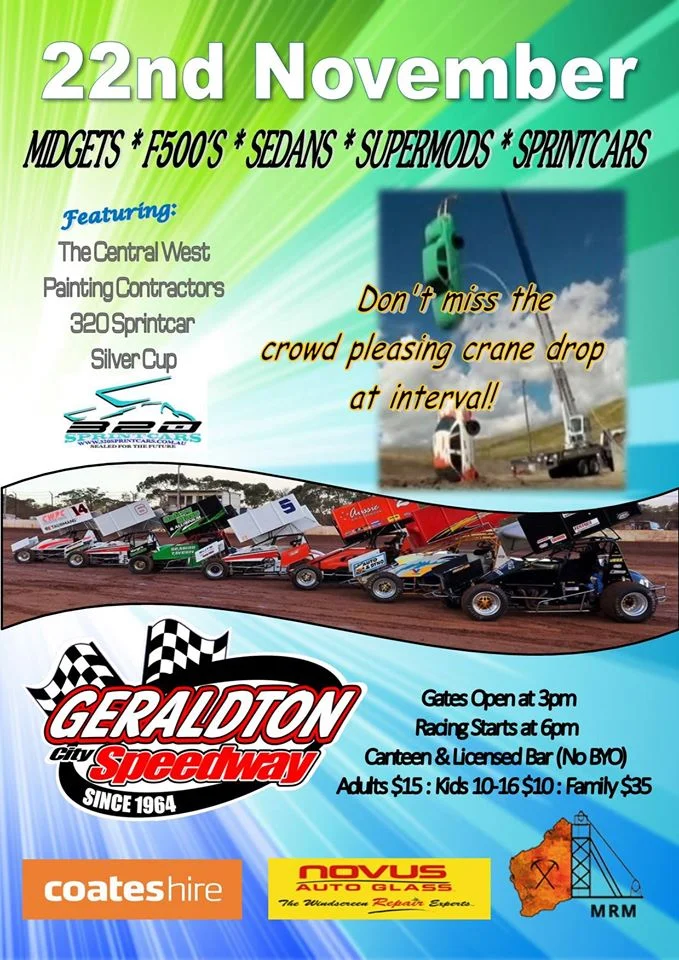 Where: Geraldton City Speedway, Bernie Clune Drive, Moonyoonooka