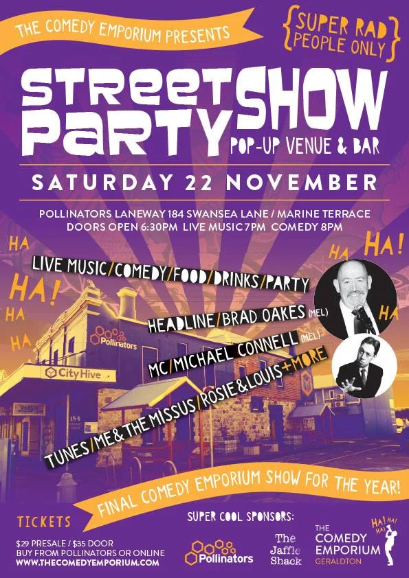 A street party like no other - celebrate with the funniest team in Geraldton for the last show of the year in the pop-up venue in the Laneway on Marine Terrace.