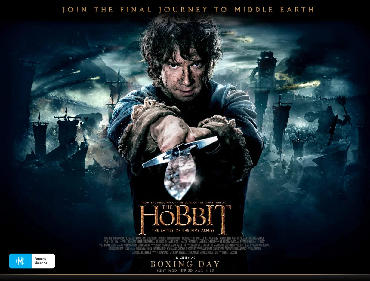 Boxing DayThe Movie Premire Presents The Hobbit The Battle Of The Five Armies 6:10pm Session or the late Session 8:40pm at Geraldton Orana Cinemas 229-235 Marine Tce Geraldton From David Barrett.