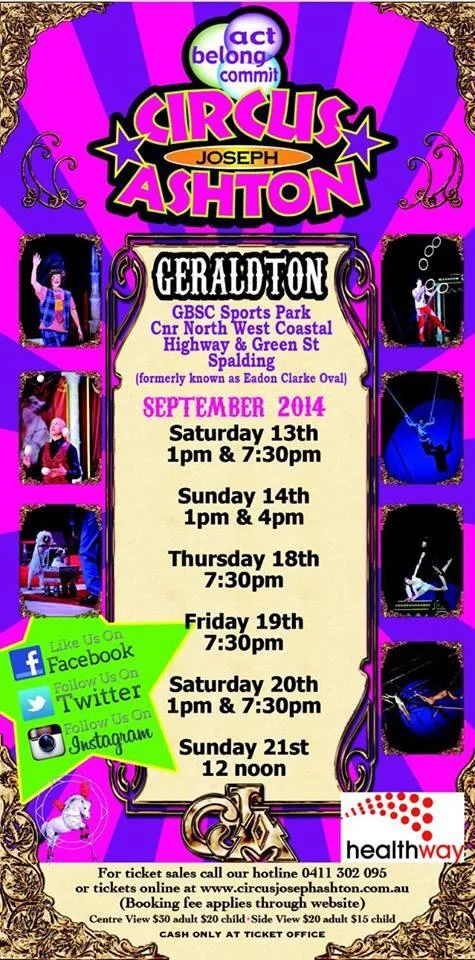 Tickets do sell fast, so it is recommended that people book in advance. The big top will set up at GBSC Sports Park (formerly Eadon-Clarke Oval), Geraldton, with shows on September 13, 18, 19 and 20 at 7.30pm, September 13, 14 and 20 at 1pm, and September 21 at noon.