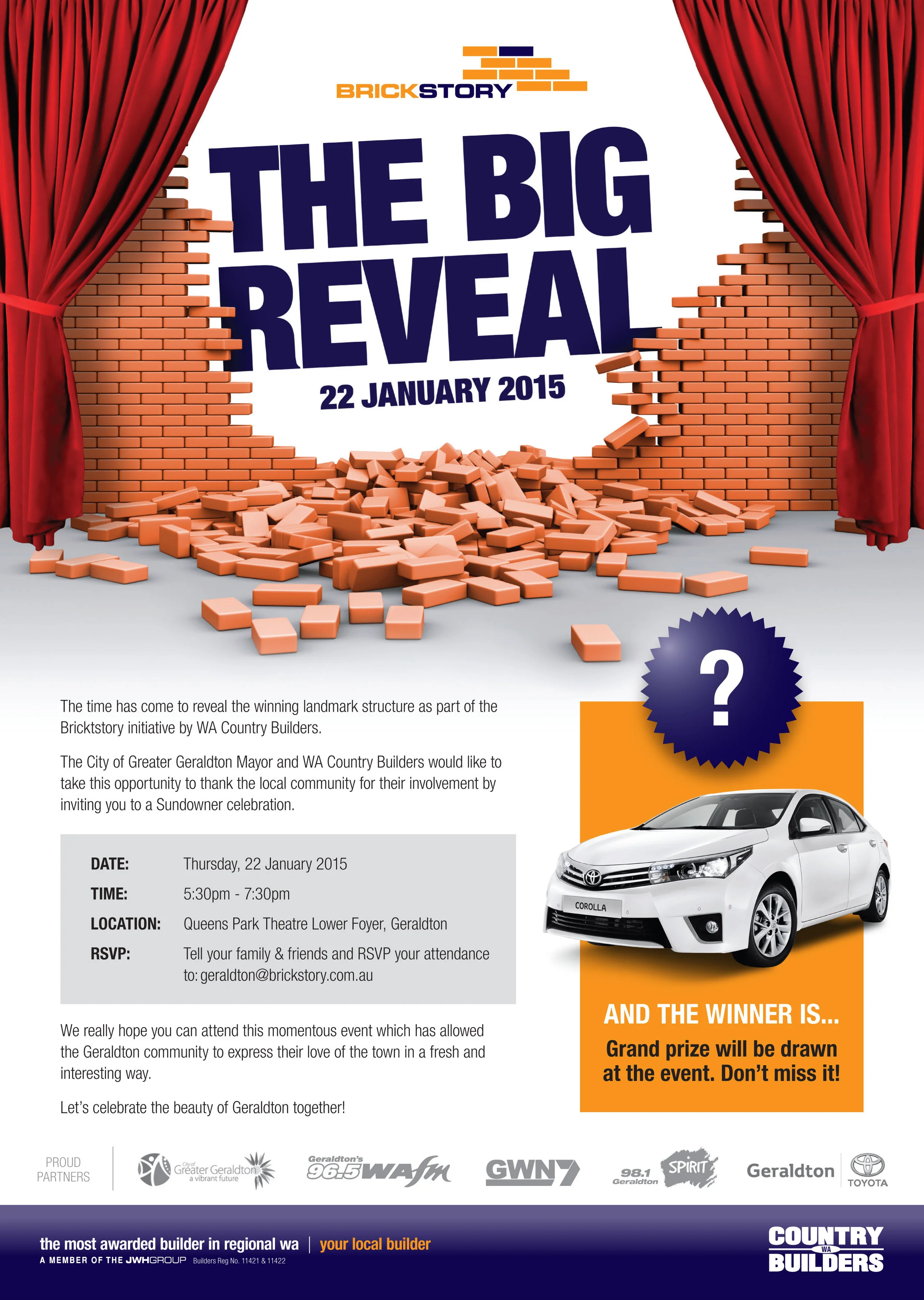 RSVP: Tell your family and friends and RSVP your attendance to: geraldton@brickstory.com.au