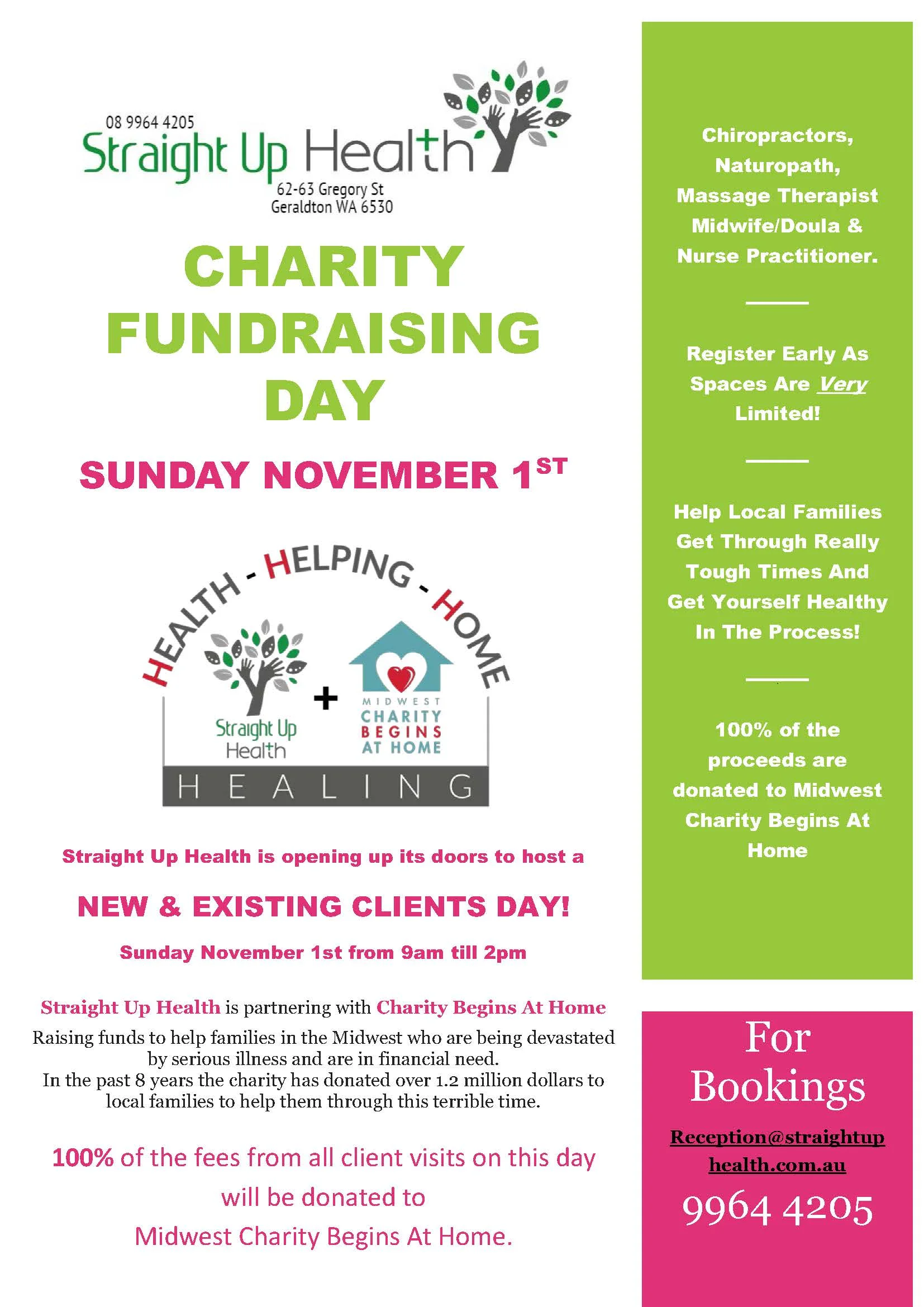 Our Second event will be Sunday November 1st 2015. So please share this message, think about people you know who could benefit from a visit with a natural health care professional and have them make a booking. Post this on your Facebook page, send it out to your email contacts, talk about it and above all else if you have never been here for an appointment or not been for a while, come on down!!