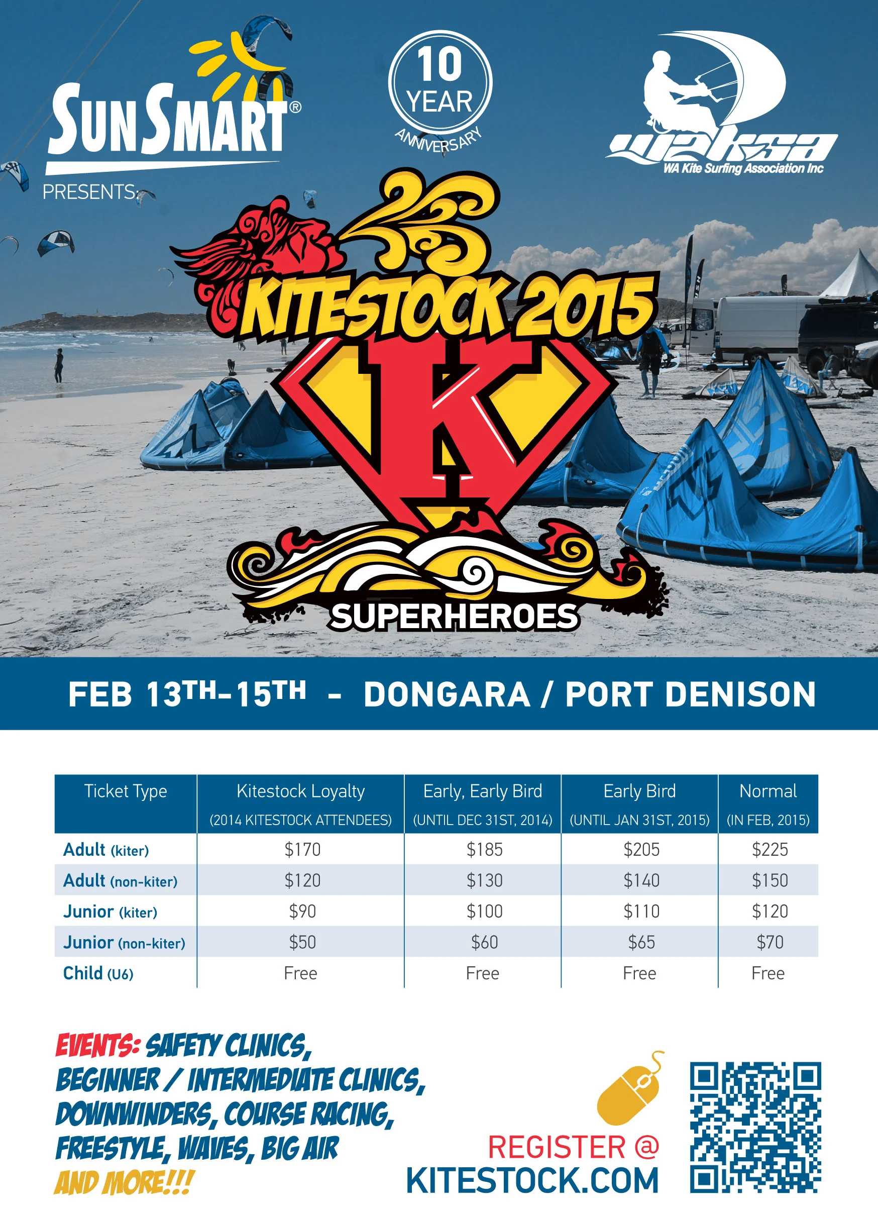 Kitestock is the premier kitesurfing event in WA, bringing together kiters of all levels for three days of exceptional kiting and socialising at the stunning ocean location of Dongara/Port Denison, WA from Friday 13th to Sunday 15th February, 2015.