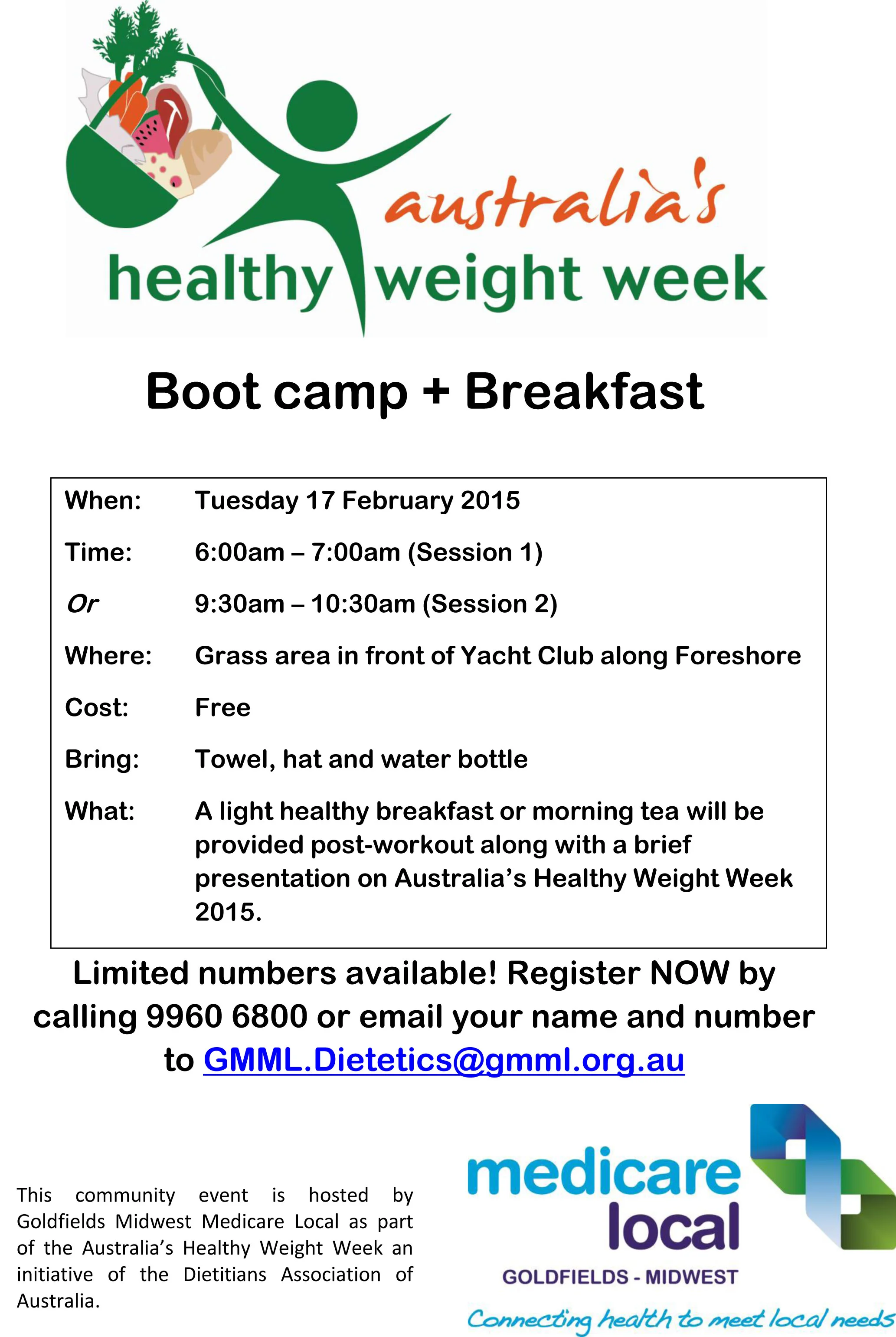 Two free sessions, one at 6.00 am and 9.30 am run by a personal trainer and dietitians. RSVP to secure a place! Please see flyer for further details.