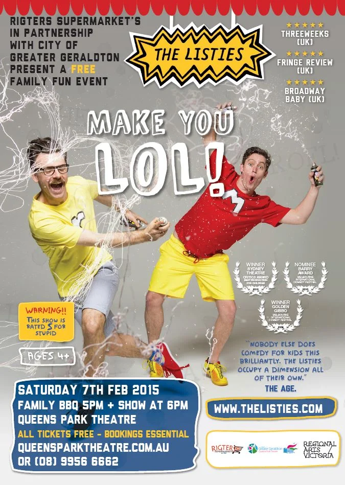 Bite'Z in partnership with the City of Greater Geraldton present the FREE Family Fun event 'The Lisities make you LOL' + Family BBQ.