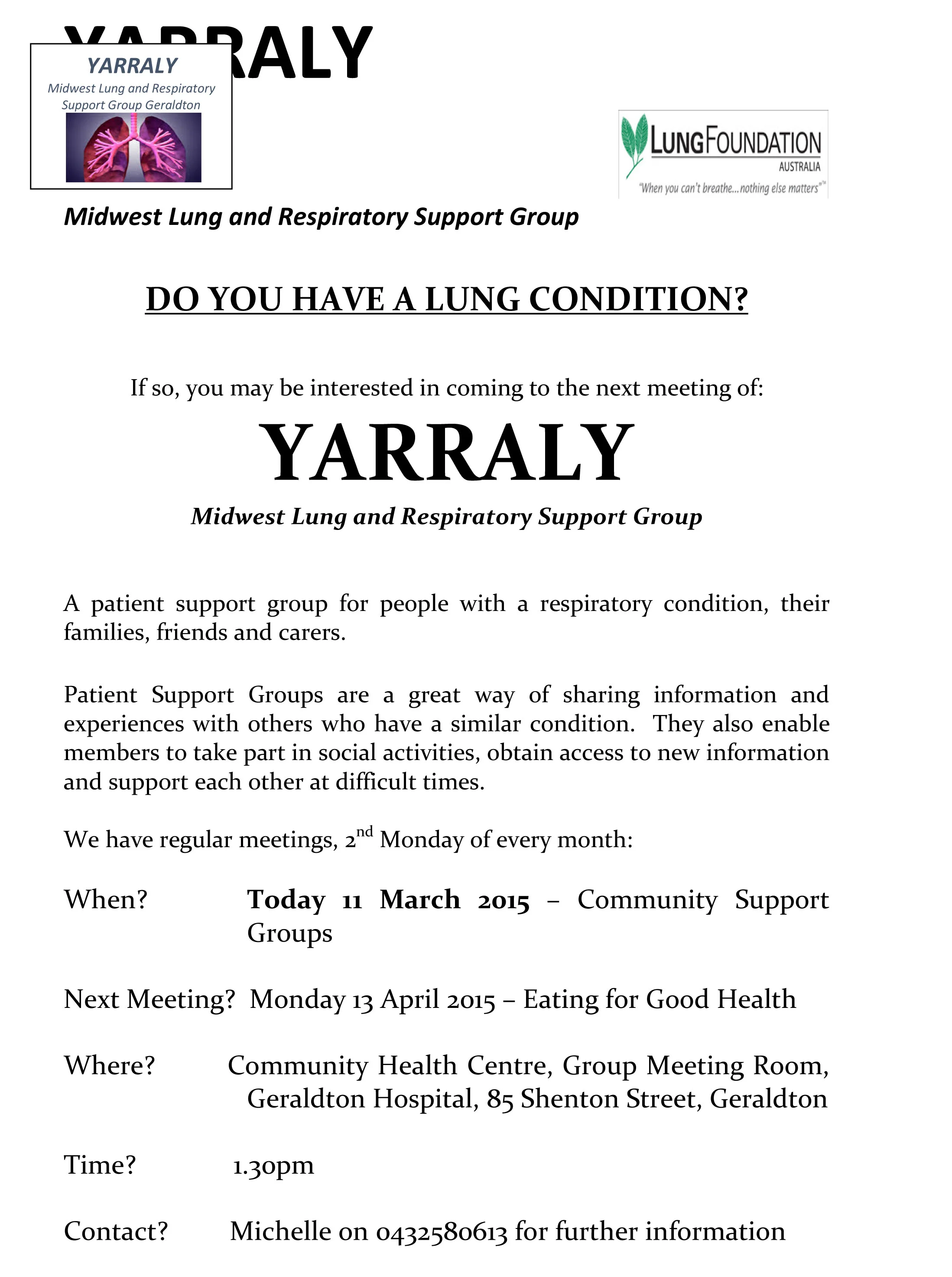 Guest speaker - Support groups and How they are Run. Today at 1.30pm. Join us for afternoon tea and meet other people who have similar conditions who may be able to support one another in a relaxed and non judgemental way.