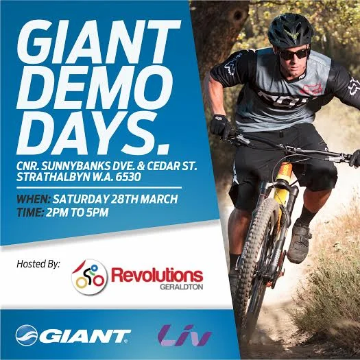 Revolutions Geraldton are hosting a Giant Demo Day this Saturday 28th of March that you don’t want to miss out on. Come and join Paul and the Giant Team where you will get the chance to demo Mountain Bikes out on the Chapman River Extension.
