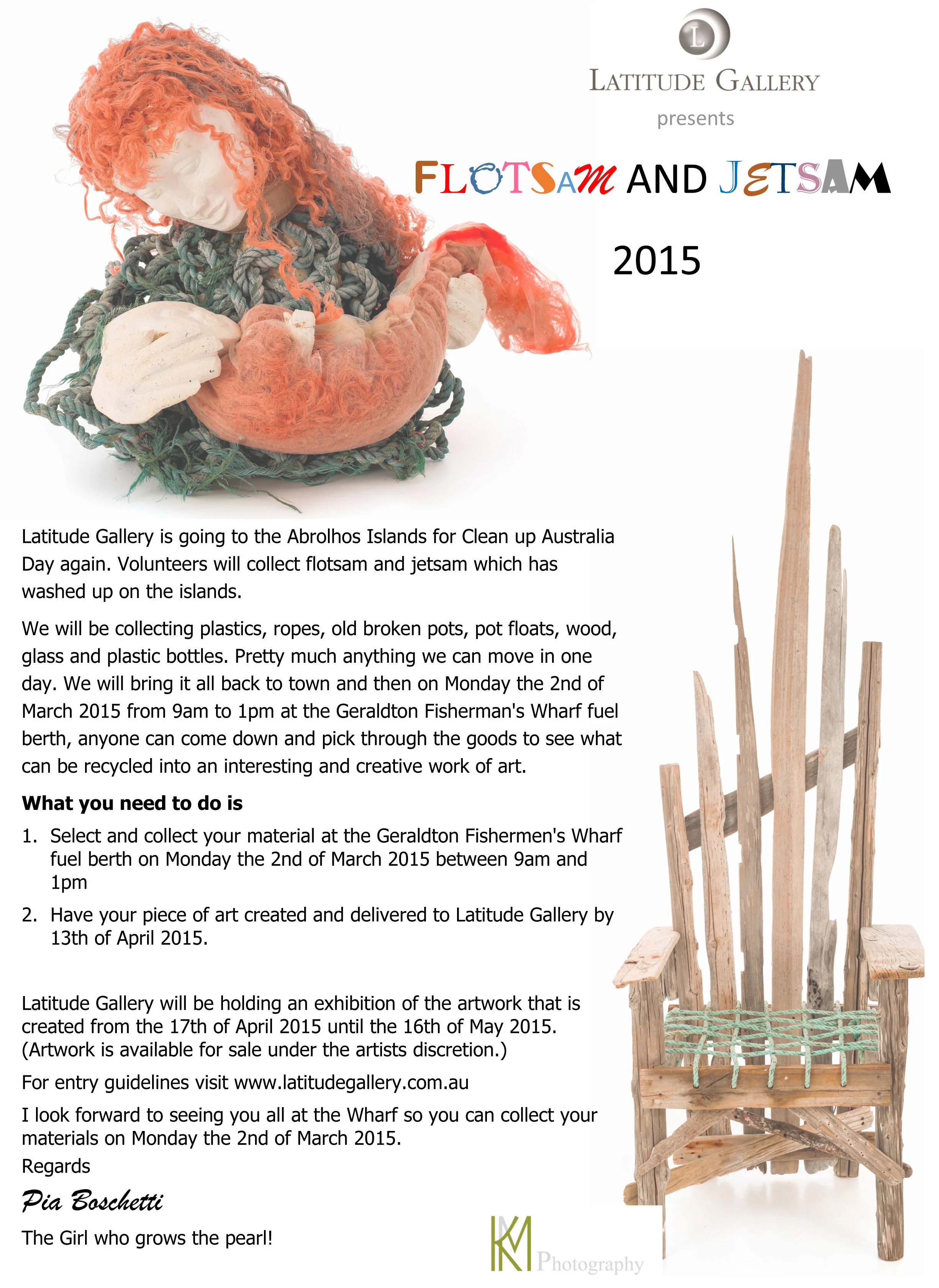 Latitude Gallery is going to the Abrolhos Islands for Clean up Australia Day again.Volunteers will collect flotsam and jetsam which has washed up on the Islands.
