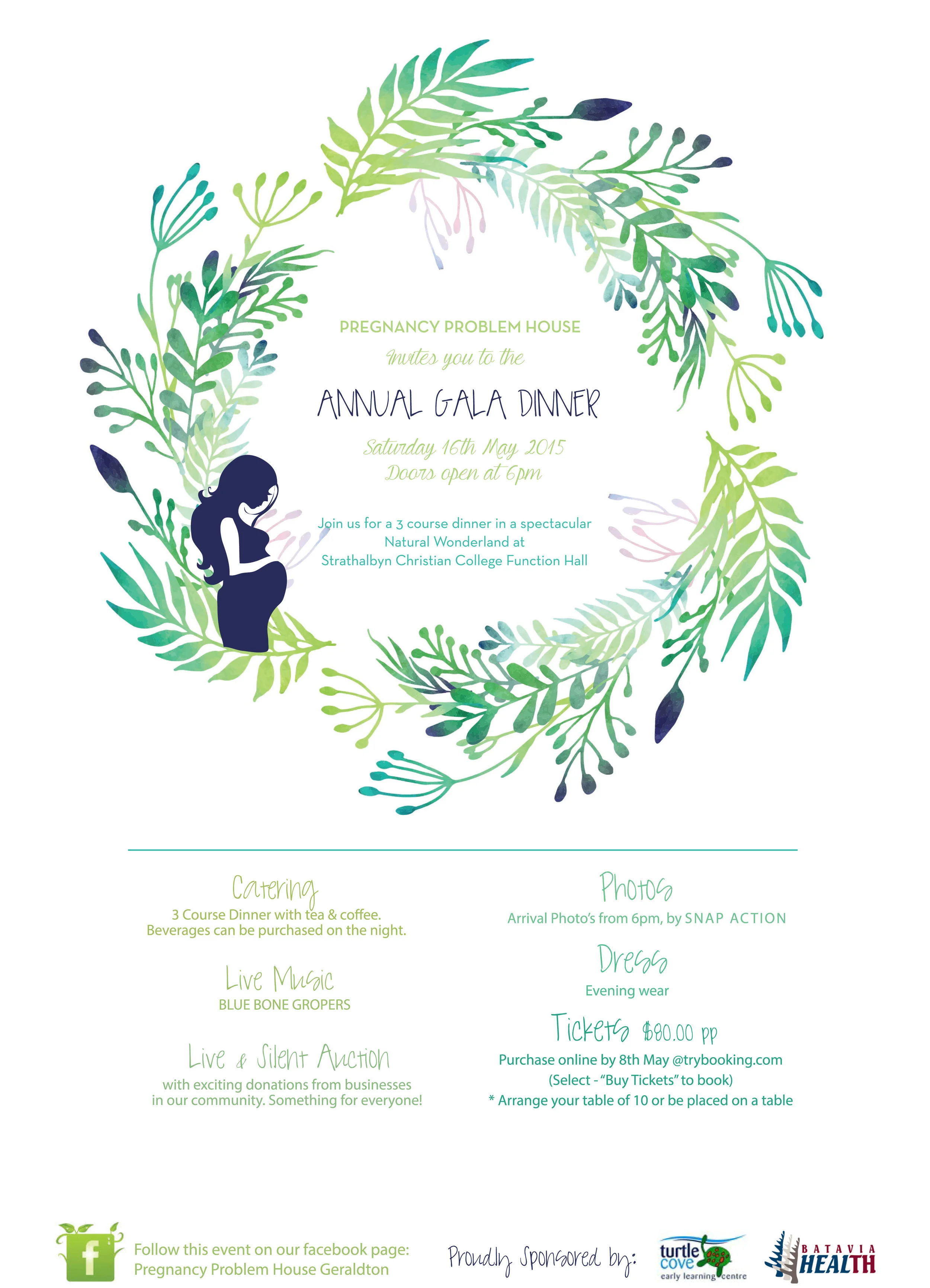 Come and Join us for a spectacular night to help raise funds for Pregnancy Problem House. Dust off your evening wear and enjoy a 3 course dinner, Live music, auctions, raffles, games and much more!