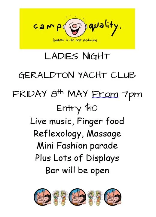 Midwest Activity Team for Camp Quality invite ladies to a little Mother's Day pampering at Geraldton Yacht Club on Friday 8th May from 7pm. Entry is $10.