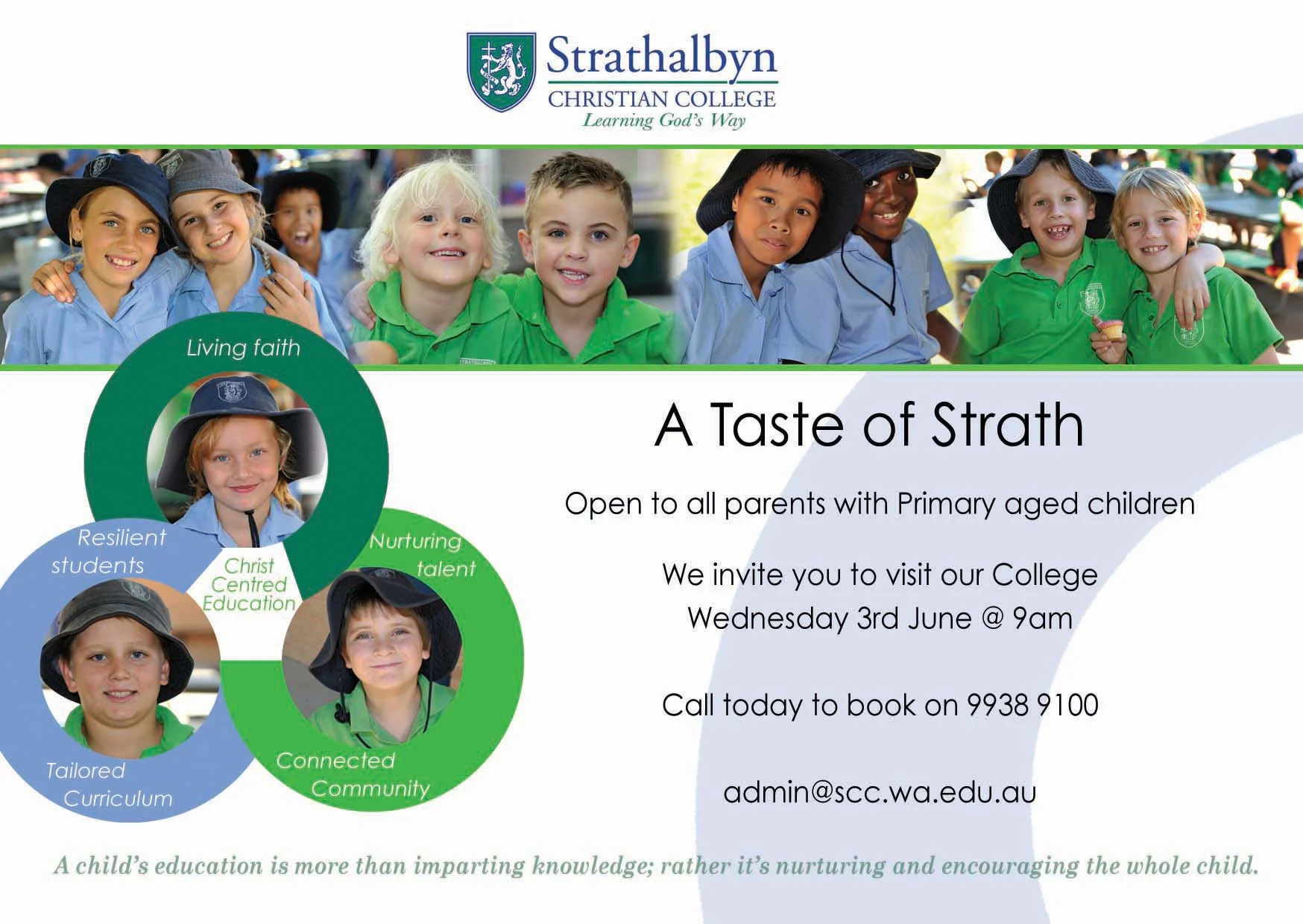 If you are looking for a school for your primary aged children but you haven't made up your mind, then we are providing you with a chance to come and get "A Taste of Strath". Bookings are essential.