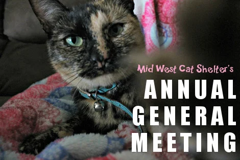 This is an invitation to all current members of Mid West Cat Shelter Inc to our Annual General Meeting (AGM) on the 23rd August 2015. It will be held at Woorree Hall (Rowan Rd, Woorree) and begin at 2pm. After the close of the meeting, we’ll be hosting a “bring and share” afternoon tea. We’d love for you to stick around for some tea, coffee and nibbles (and of course, a good chat!).