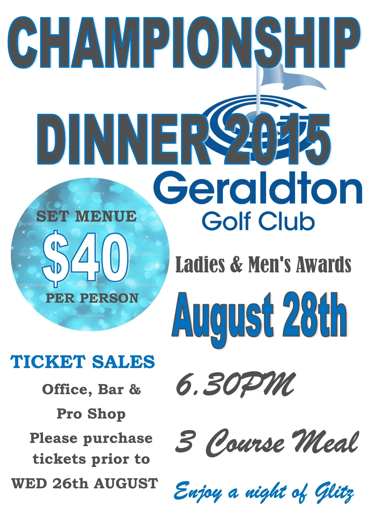 Ticket Sales Available from Office, Bar or Pro Shop purchase tickets by WED 26th AUGUST