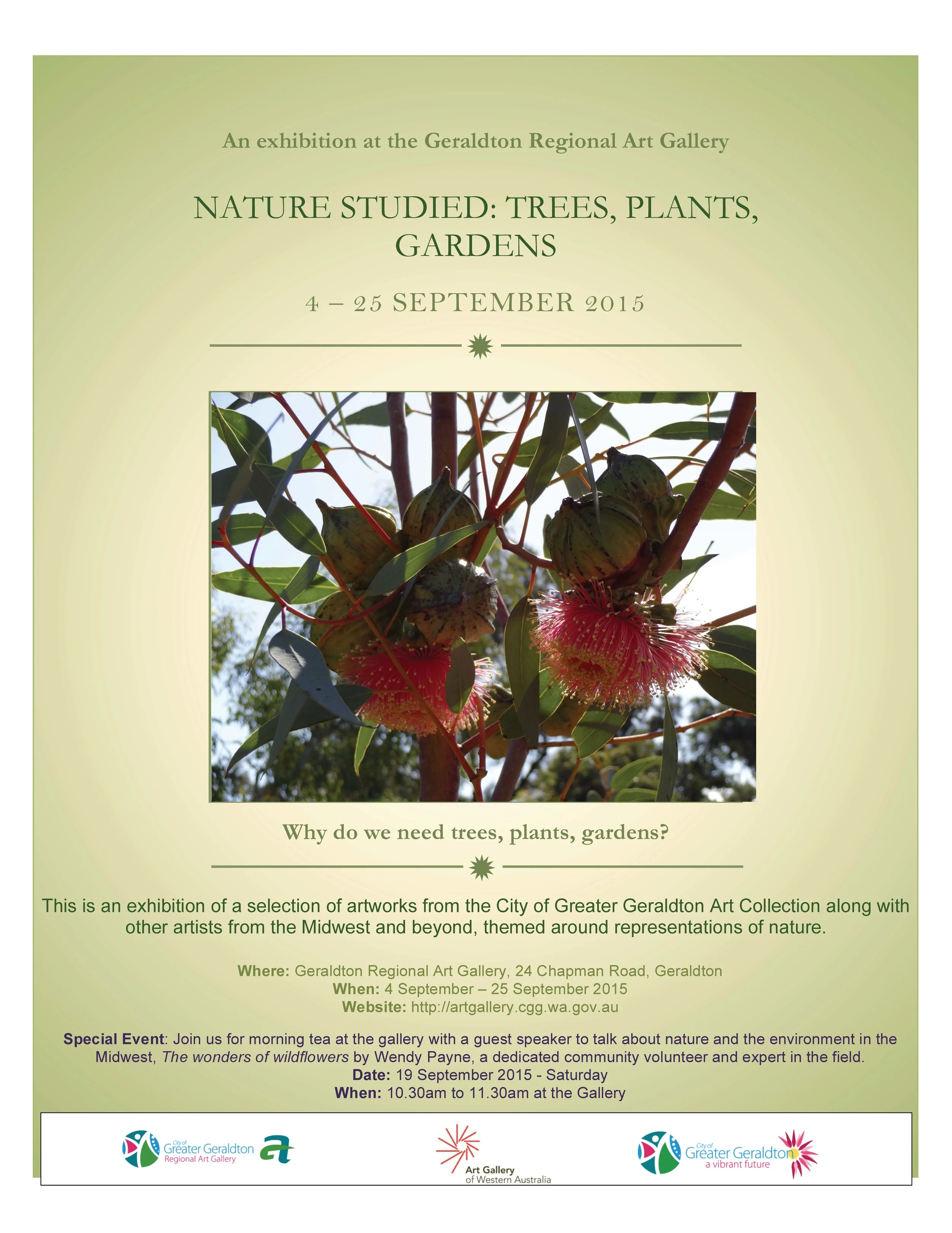 Join us for morning tea at the gallery to talk about nature and the environment in Geraldton, with an invited guest speaker, giving a 30 minute talk about wildflowers.
