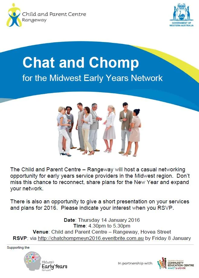 The Child and Parent Centre - Rangeway will host a casual networking opportunity for early years service providers in the Midwest region. Don't miss this chance to reconnect, share plans for the New Year and expand your network.