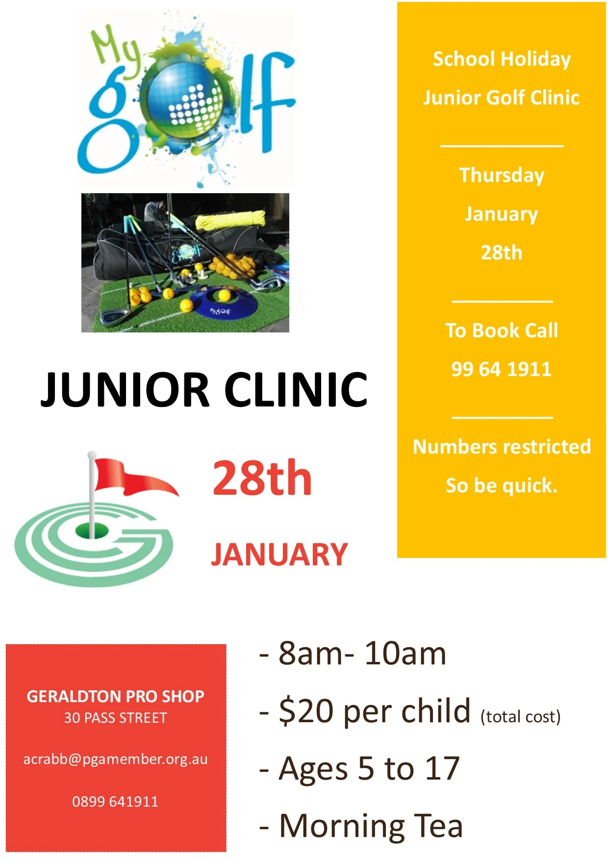 Bookings Essential call Geraldton Pro Shop 9964 1911