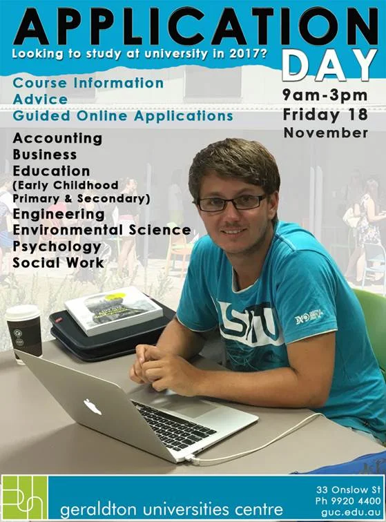 Apply for university study in 2017 at Geraldton Universities Centre’s Application Day.