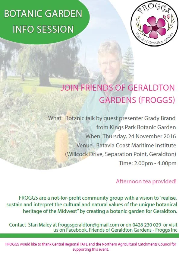 Join Friends of Geraldton Gardens (FROGGS )for a botanical themed talk by guest presenter Grady Brand