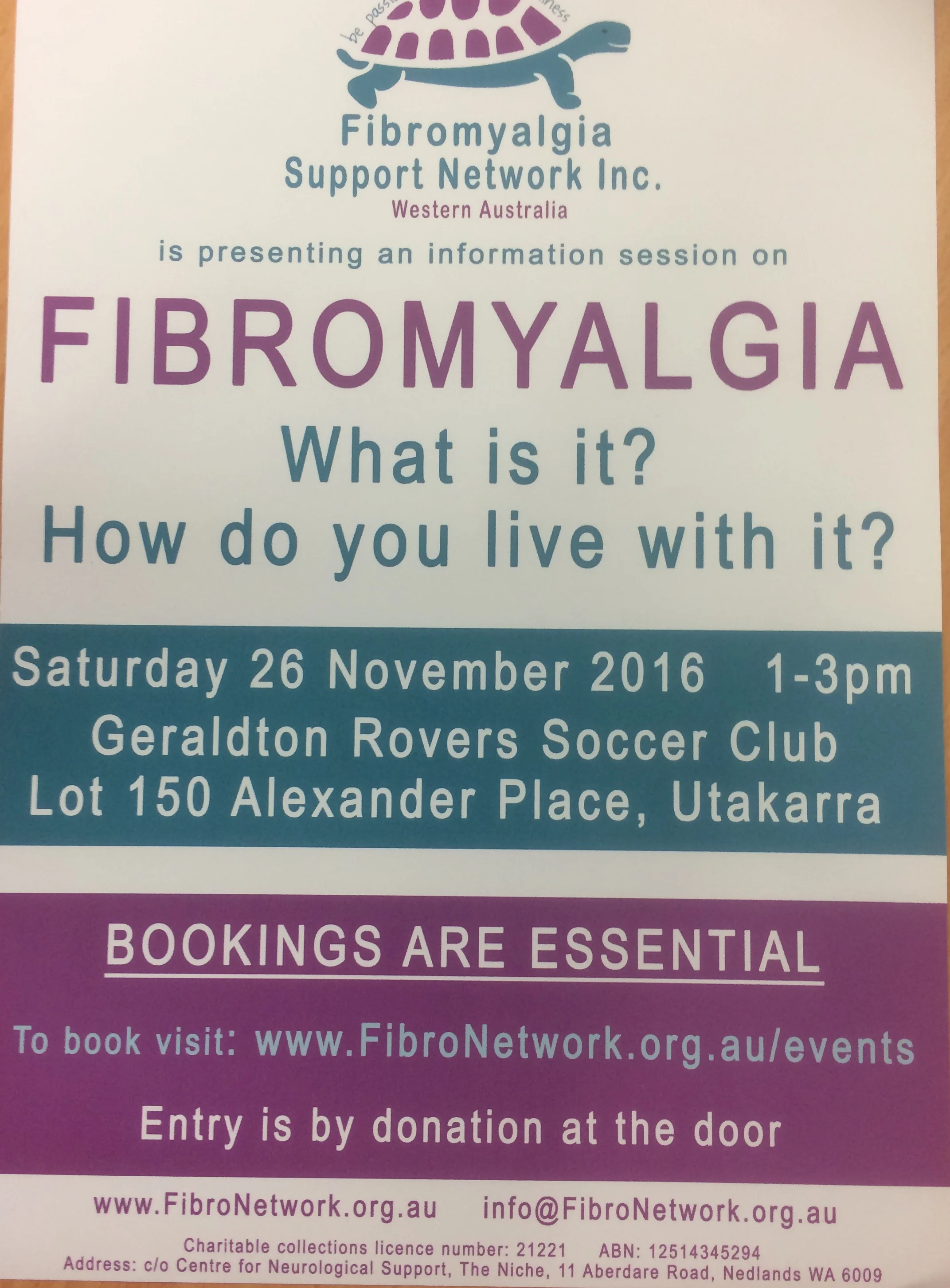 Who to contact for enquiries: Fibromyalgia Support Network Inc WA - http://www.fibronetwork.org.au/contact.html (sorry no telephone number)