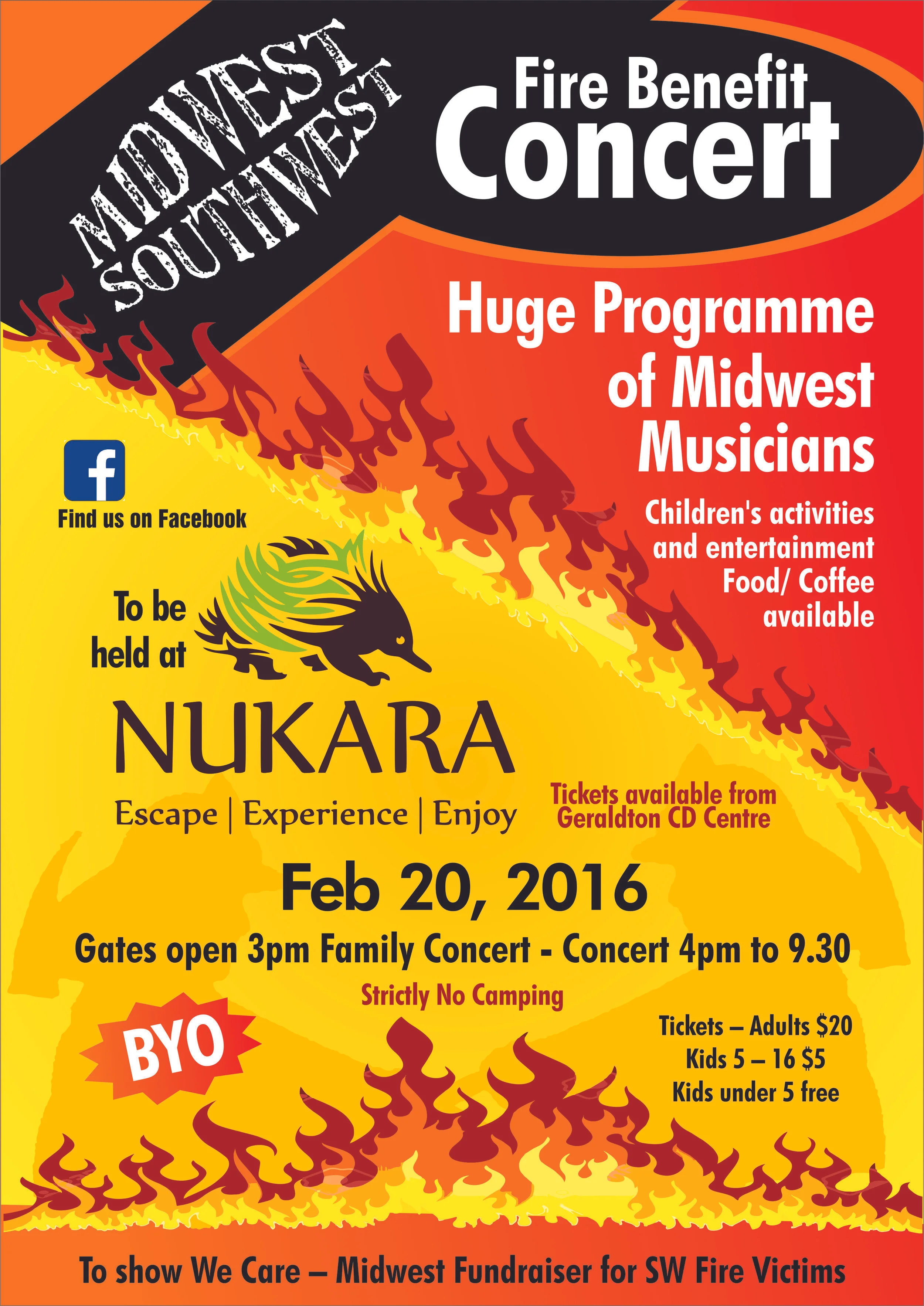 Saturday Feb 20 4pm to 9.30pm Family orientated Fundraising Event for devastated Waroona and Yarloop. Fully supported by Wa Volunteer Fire Brigades... An exciting programme of music, surprise spot auctions and special guests. Lots of fire trucks, big screen and loads of great food, a superb family friendly location.