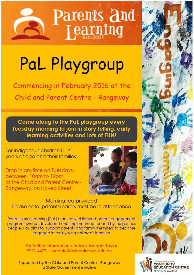 *Parents and Learning (PaL) is an early childhood parent engagement program owned, developed and implemented for and by indigenous people. PaL aims to support parents and family members to become engaged in their young children's learning.