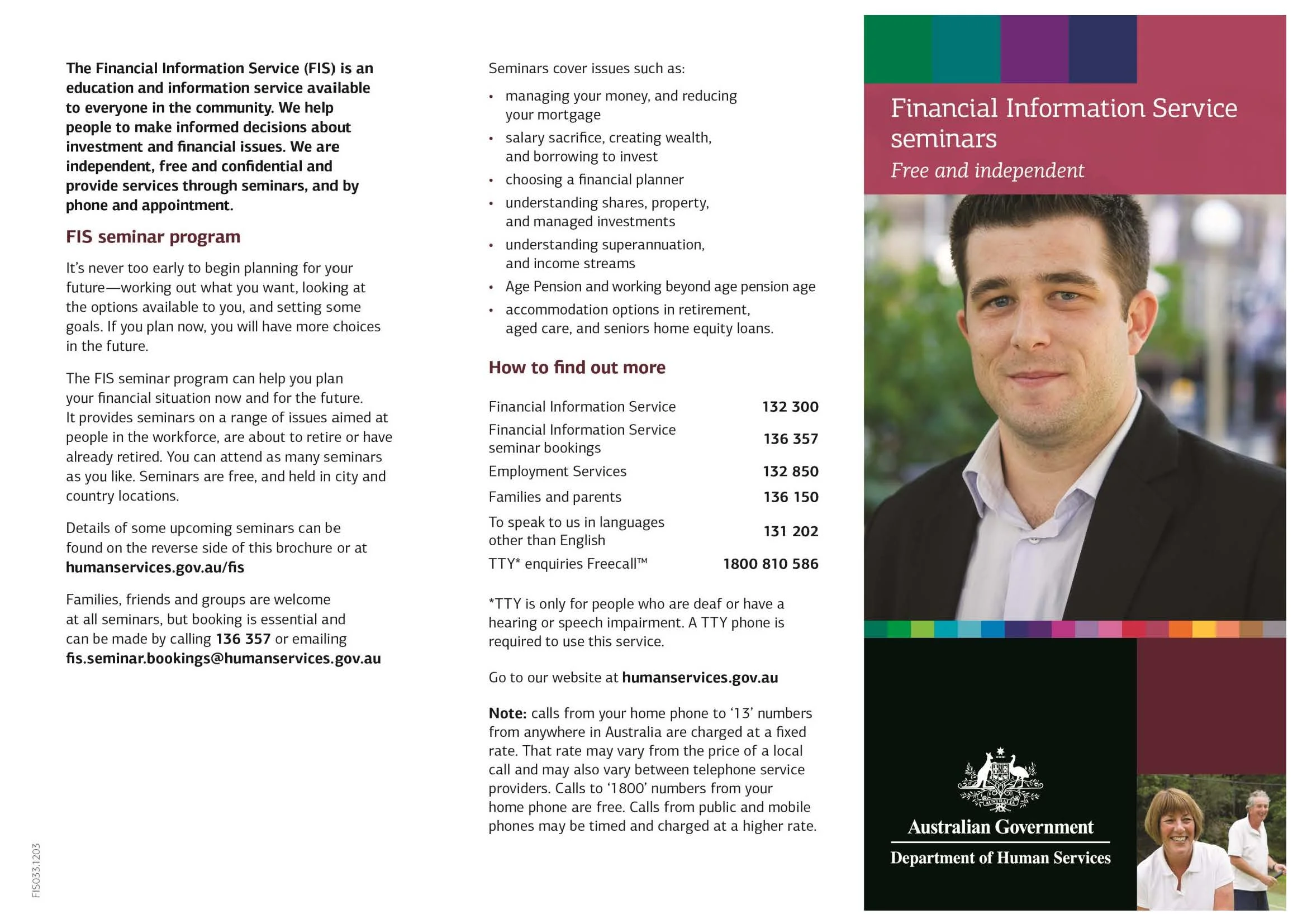 Bookings are essential – Ring 13 63 57 or email fis.seminar.bookings@humanservices.gov.au to book your place.