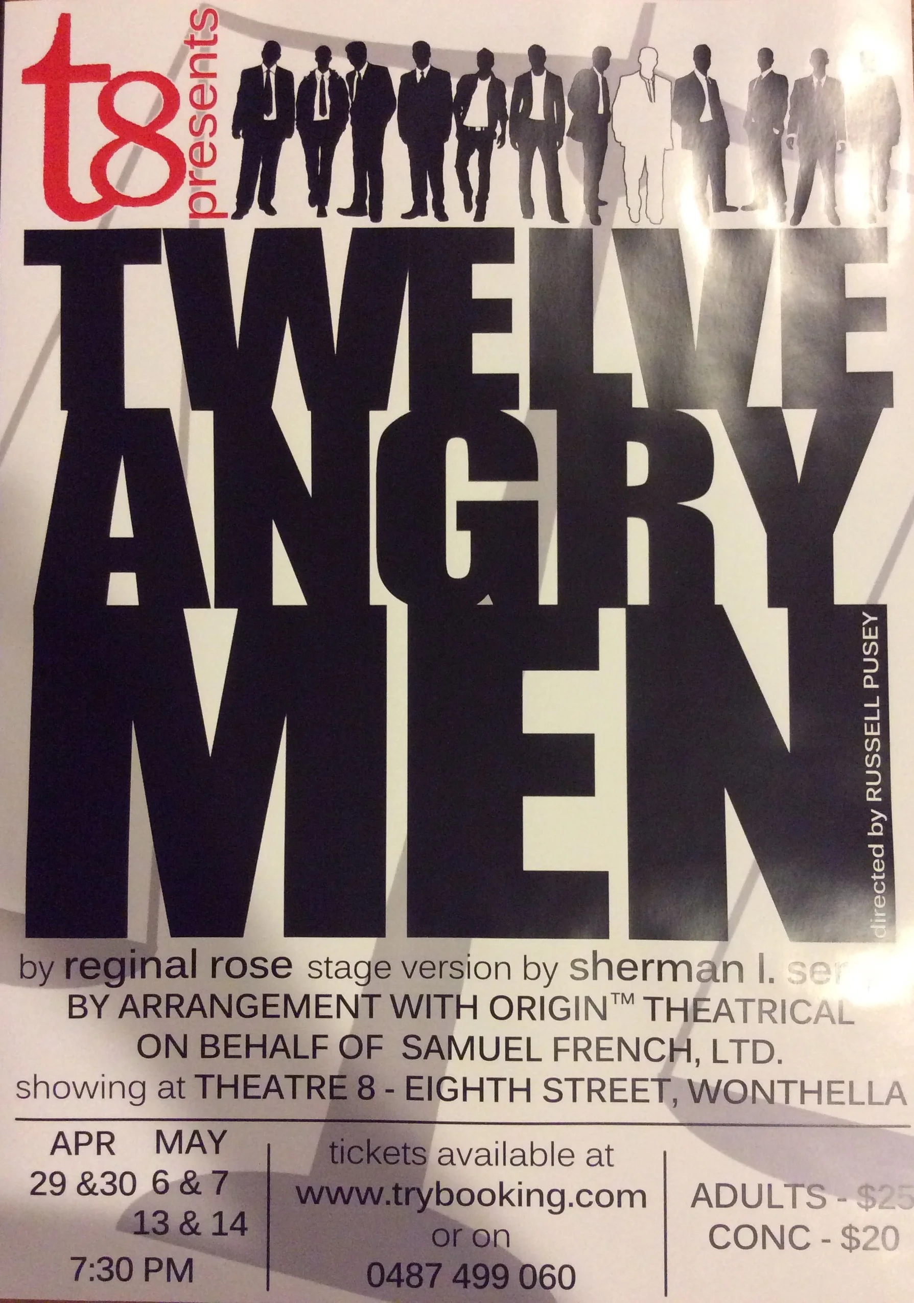 This play is a Masculine dramatic piece. It is set in the 1950's. The trial of a young boy, charged with the murder of his Father, has just been completed. His fate is now to be decided by the twelve men in the jury. The case appears to be black and white to a guilty verdict, but one juror has a doubt in his mind. Can this man persuade the other 11 jurors to change their verdict? Twelve Angry Men, will take you on a journey through many dramatic twists, that will lead you to question every part of the case, until it's conclusion.