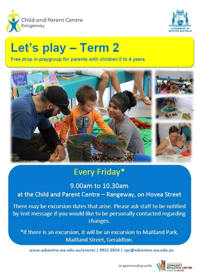9am to 10.30am at the Child and Parent Centre - Rangeway, on Hovea Street.