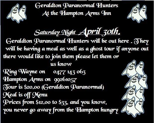 Ghost tour 20 per person, join us for a meal or just the tour please ring or inbox or even text Wayne Giles 0477143063