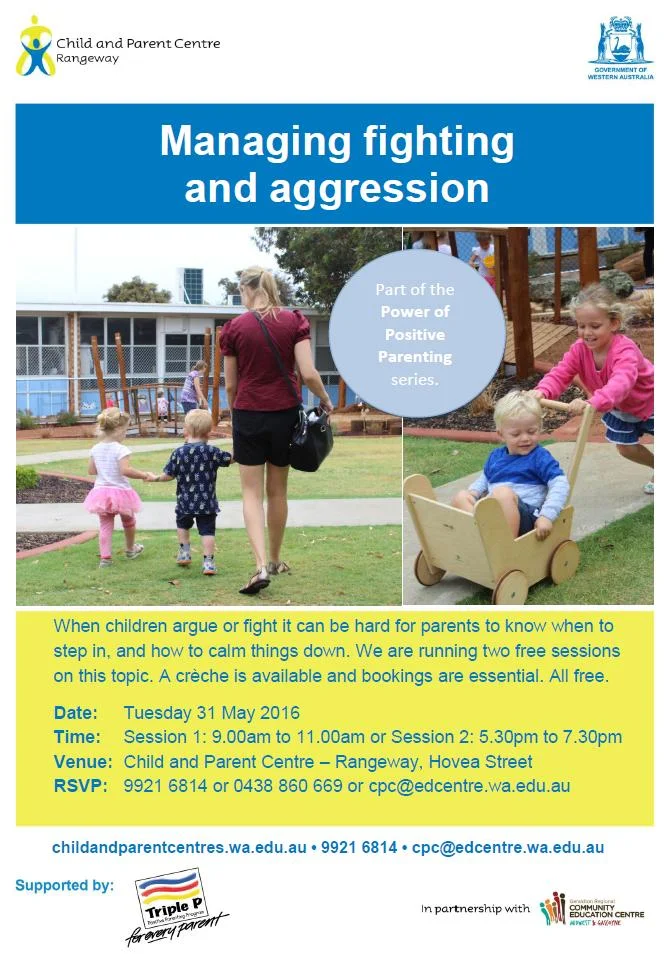 When children argue or fight it can be hard for parents to know when to step in, and how to calm things down. We are running two free sessions on this topic. A creche is available and bookings are essential. All free.