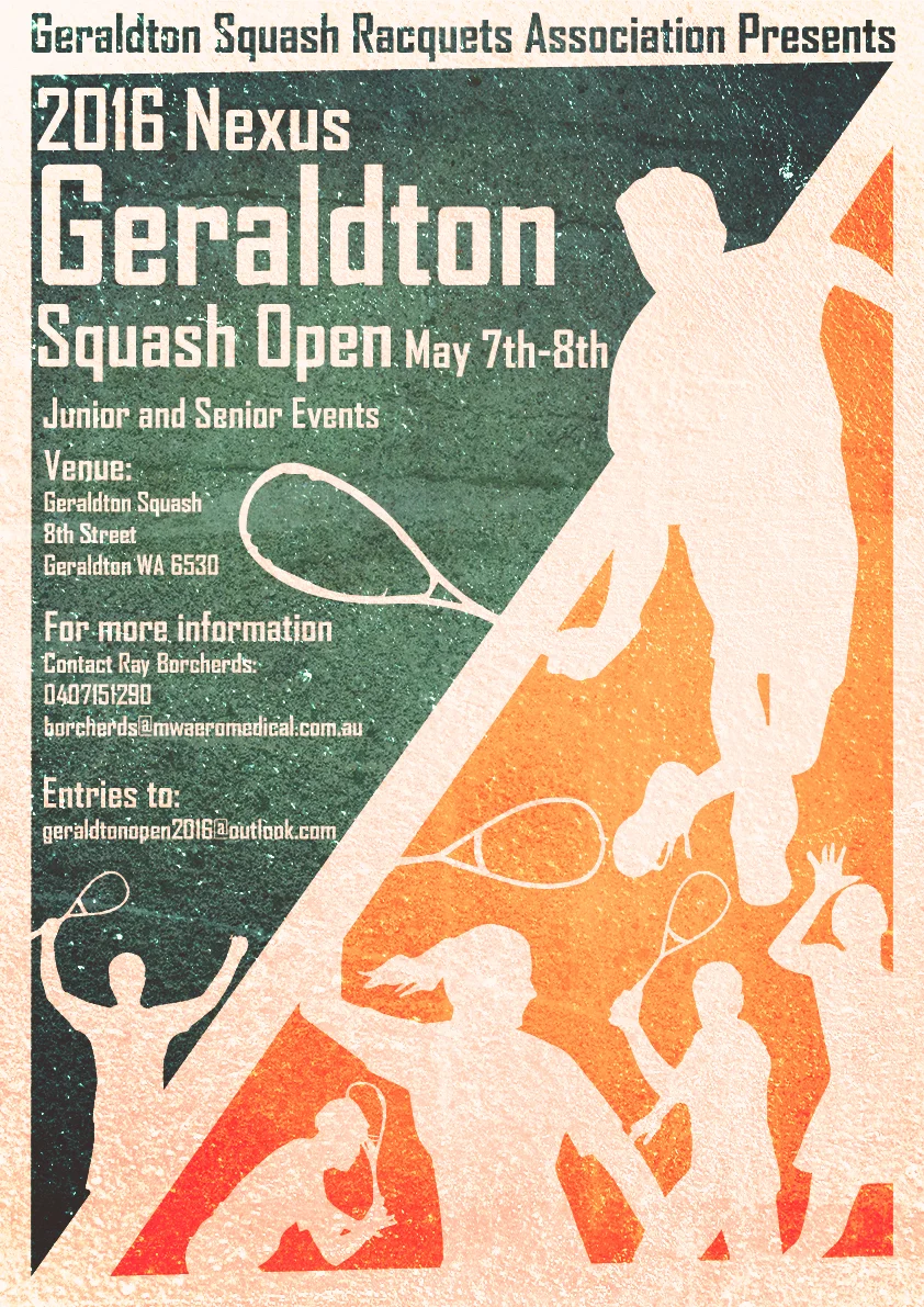 Come and play at the Midwest's top squash tournament. Senior and Junior events covering all ability ranges. Pick up a entry form from the squash club on 8th Street, or download from FB (Geraldton Squash). Watch State grade players and talented juniors battle it out in a range of divisions. Prizes for all divisions!