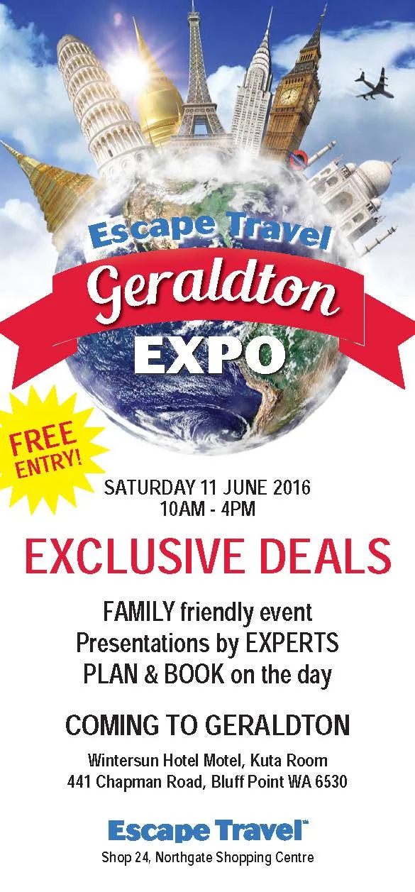 In June 2016, we will be bringing you a FREE Escape Travel Expo. If you're planning a trip or simply just want to find out more about any worldwide destination, come along and ask the experts!