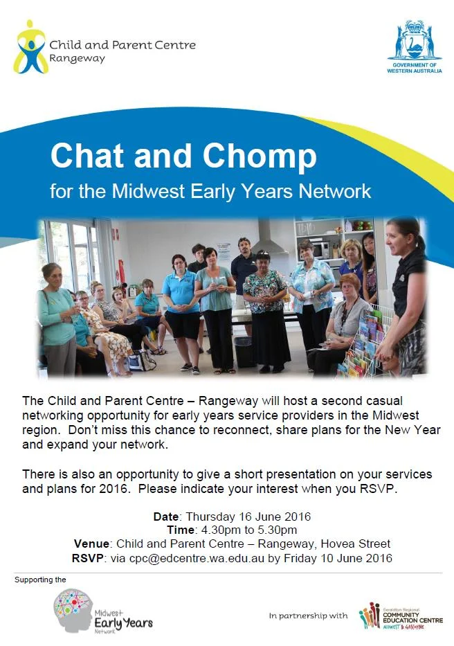 The Child and Parent Centre - Rangeway will host the second casual networking opportunity for early years service providers in the Midwest Region. Don't miss this chance to reconnect, share plans for the New Year and expand your network.