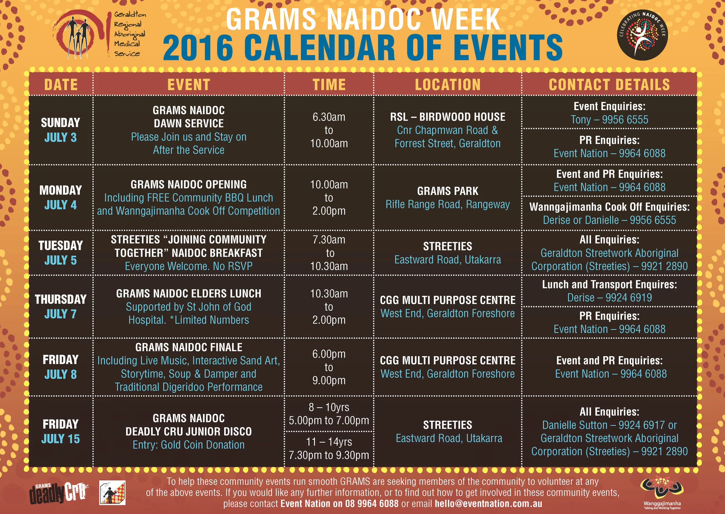 To add your community event to the calendar email geraldtonevents@justeverything.com.au