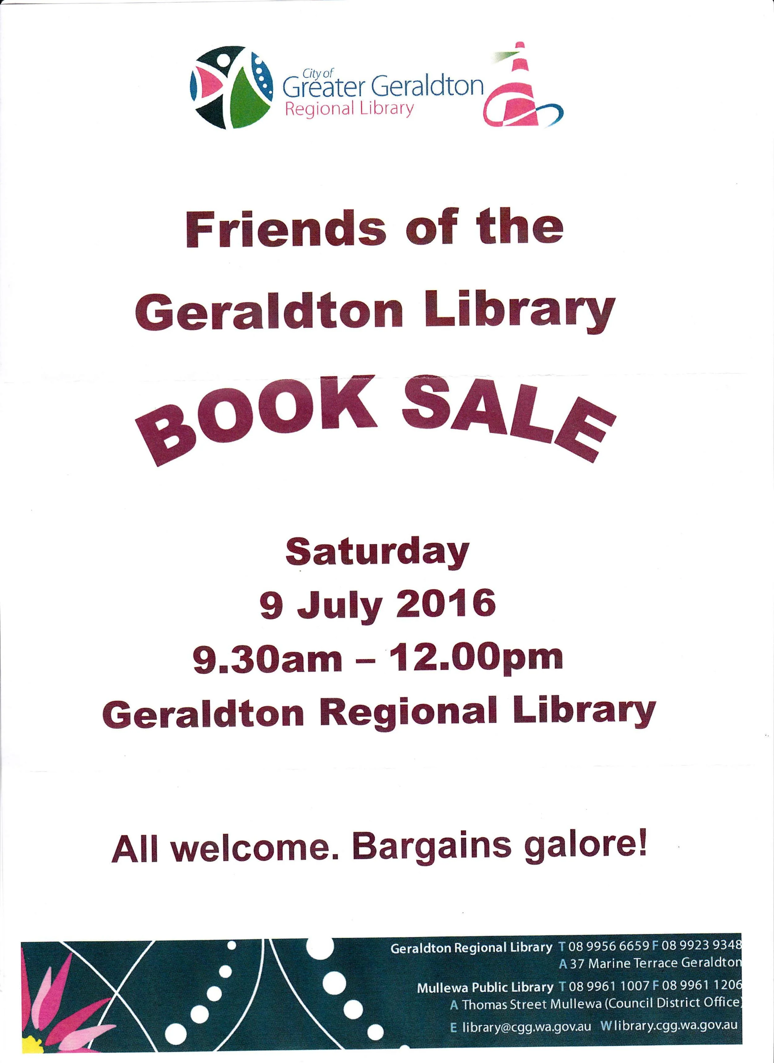 Saturday 9th July 2016, 9.30am to 12.00 noon at the Geraldton Regional Library