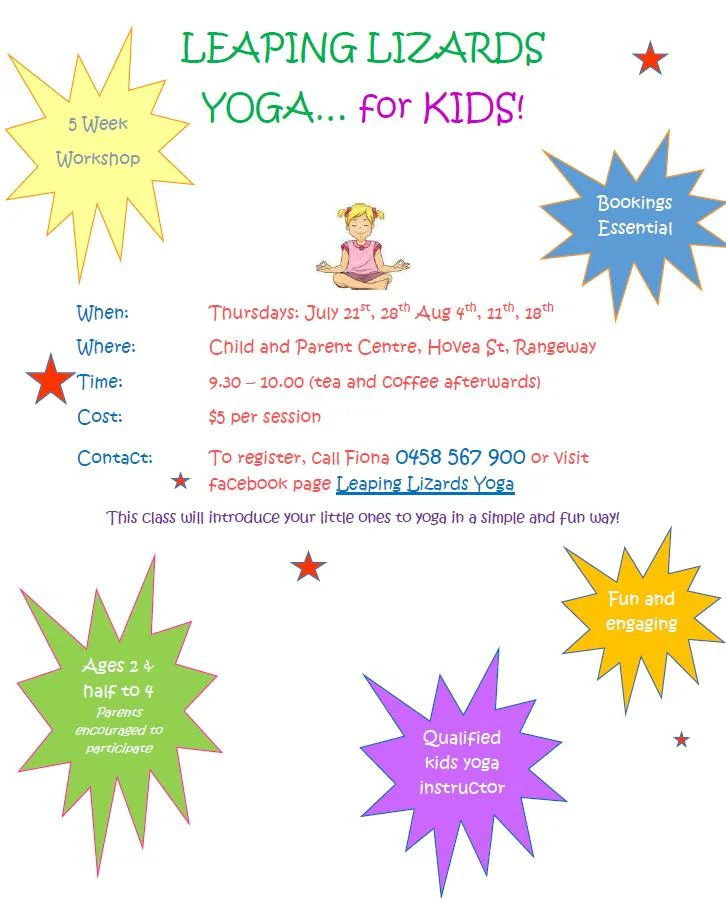 Leaping Lizards brings *yoga for kids* to the Child and Parent Centre - Rangeway! Introducing your little ones to yoga in a simple and fun way, with a qualified yoga instructor.
