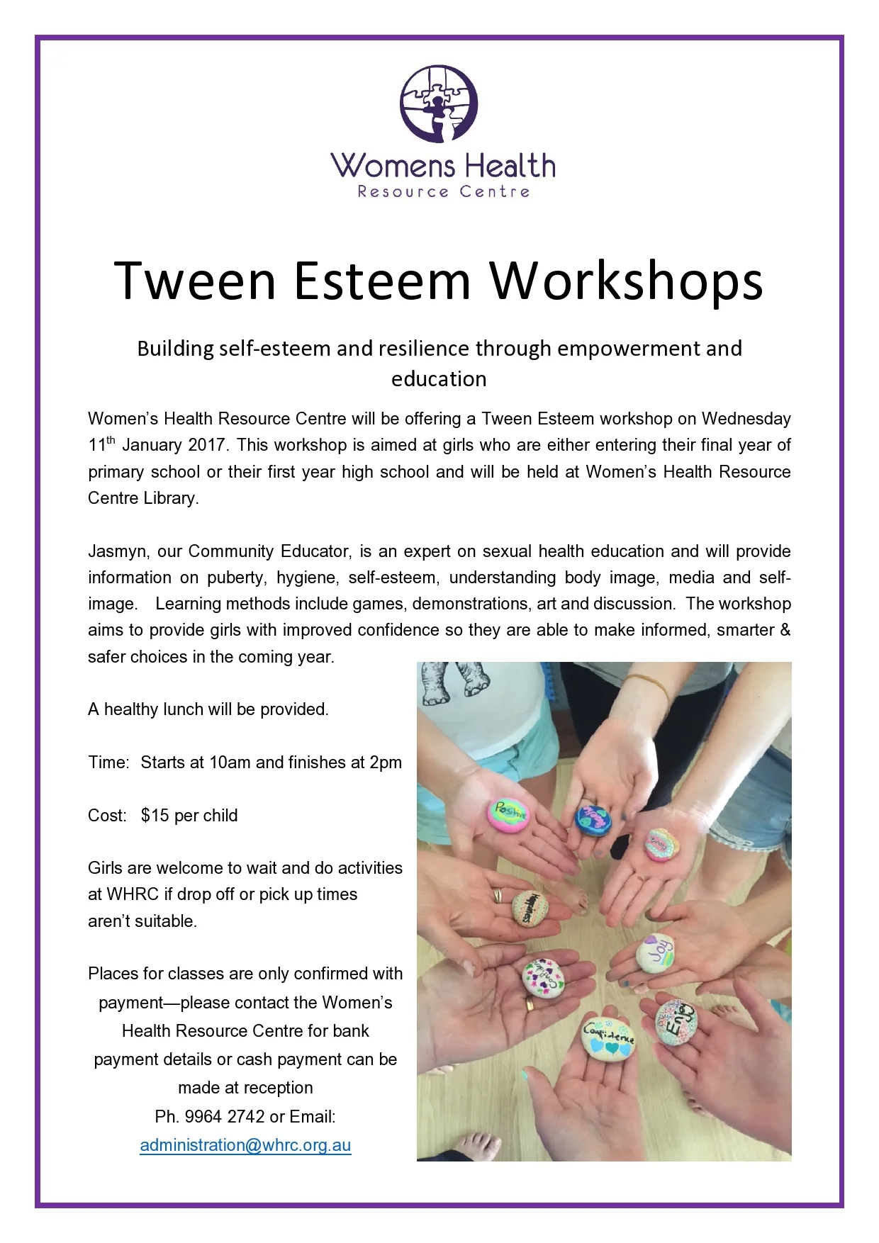 Who to contact for enquiries: Jasmyn Williams, Community Educator at WHRC 99642742