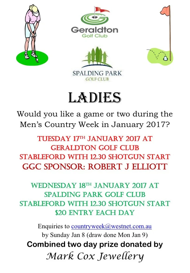 Tuesday 17th January 2017 held at Geraldton Golf Club. Event Stableford 12.30PM S/Gun Start