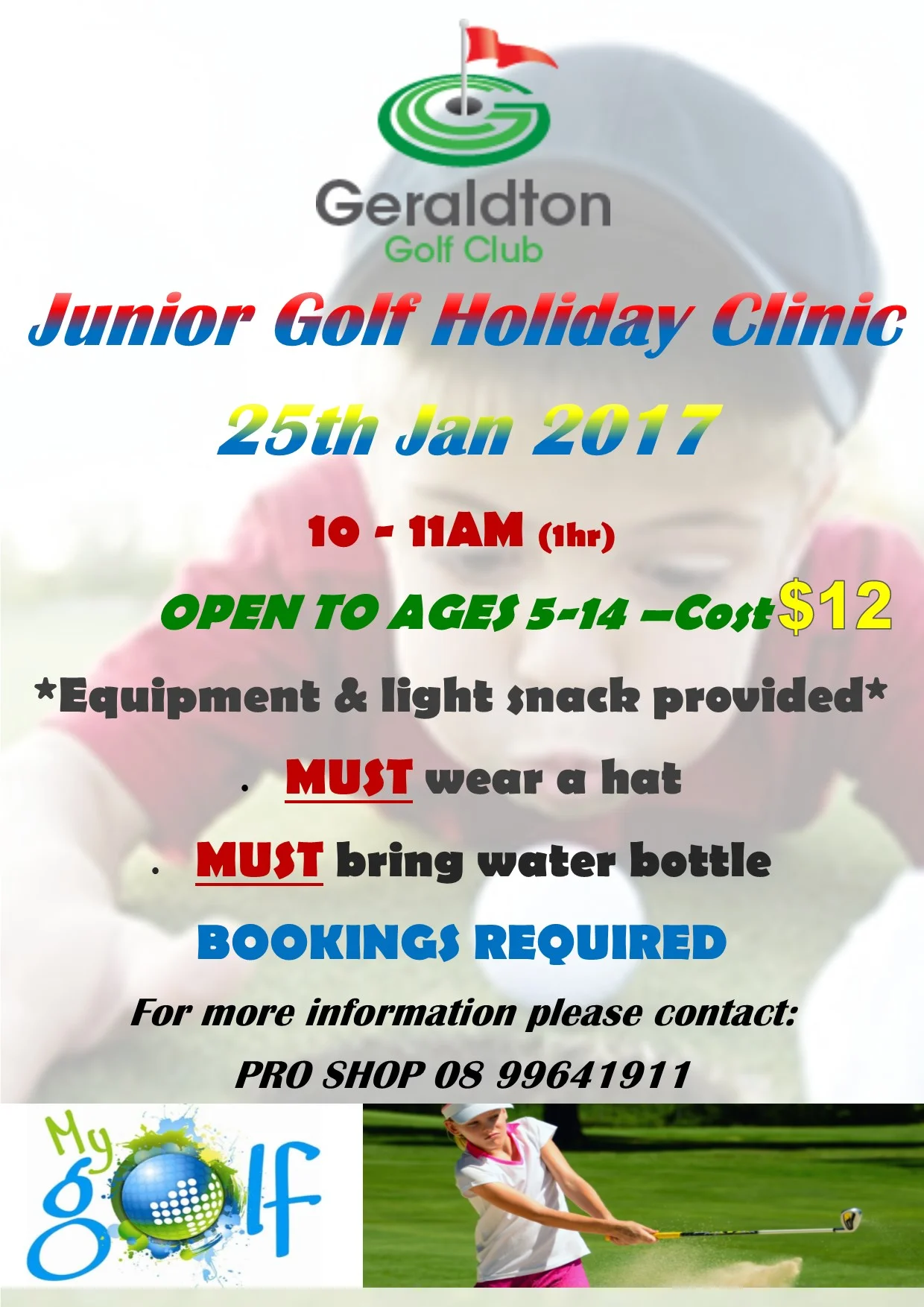 Who to contact for enquiries: Geraldton Pro Shop Ph 99 641911