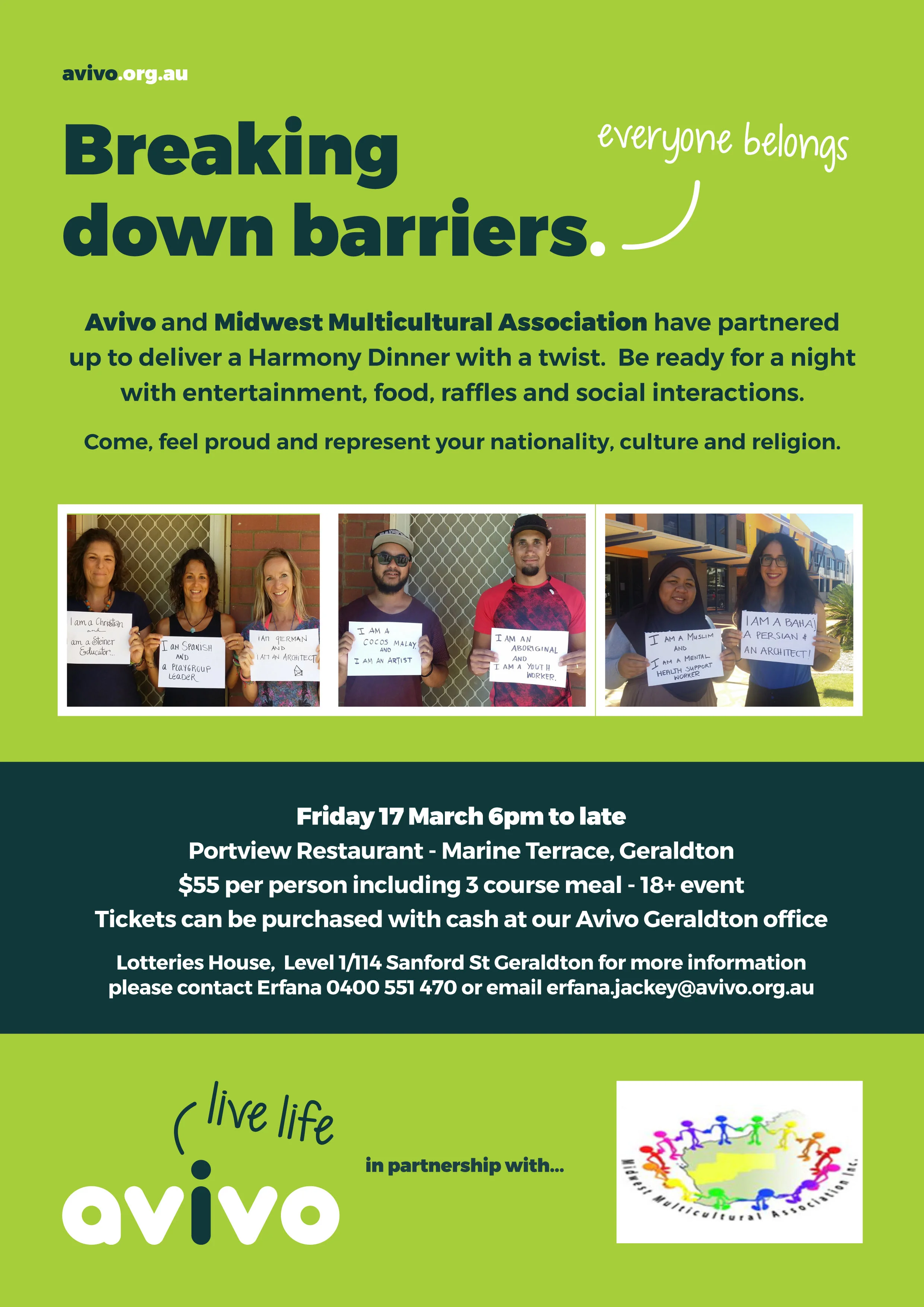 Avivo and Midwest Multicultural Association has partnered to deliver Harmony Dinner 2017 with a twist. There will be food, entertainment, raffles and lots of social interactions.