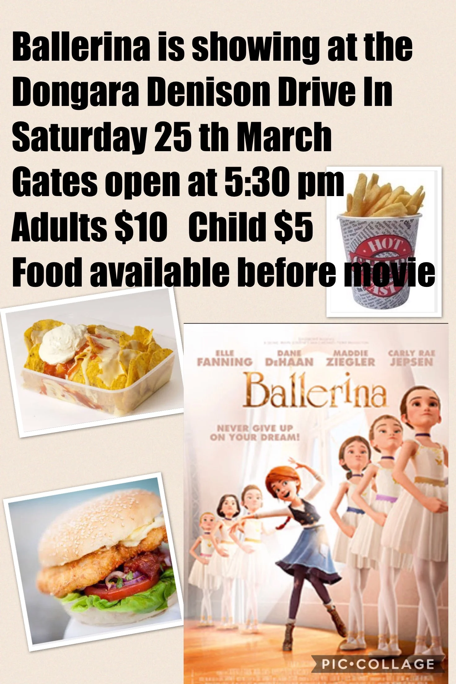 The movie Ballerina is showing on Saturday 25 th March