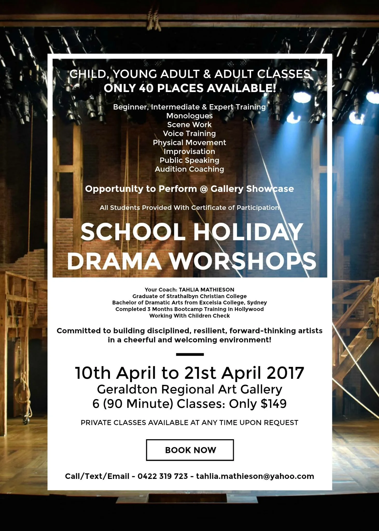 Were committed to building disciplined, resilient, forward-thinking artists in a cheerful and welcoming environment. Join us to build your skills in voice, movement, improvisation, scene work and public speaking. A wonderful opportunity for students looking to make new friends, gain self confidence and self love. We'd love to welcome you to our team!