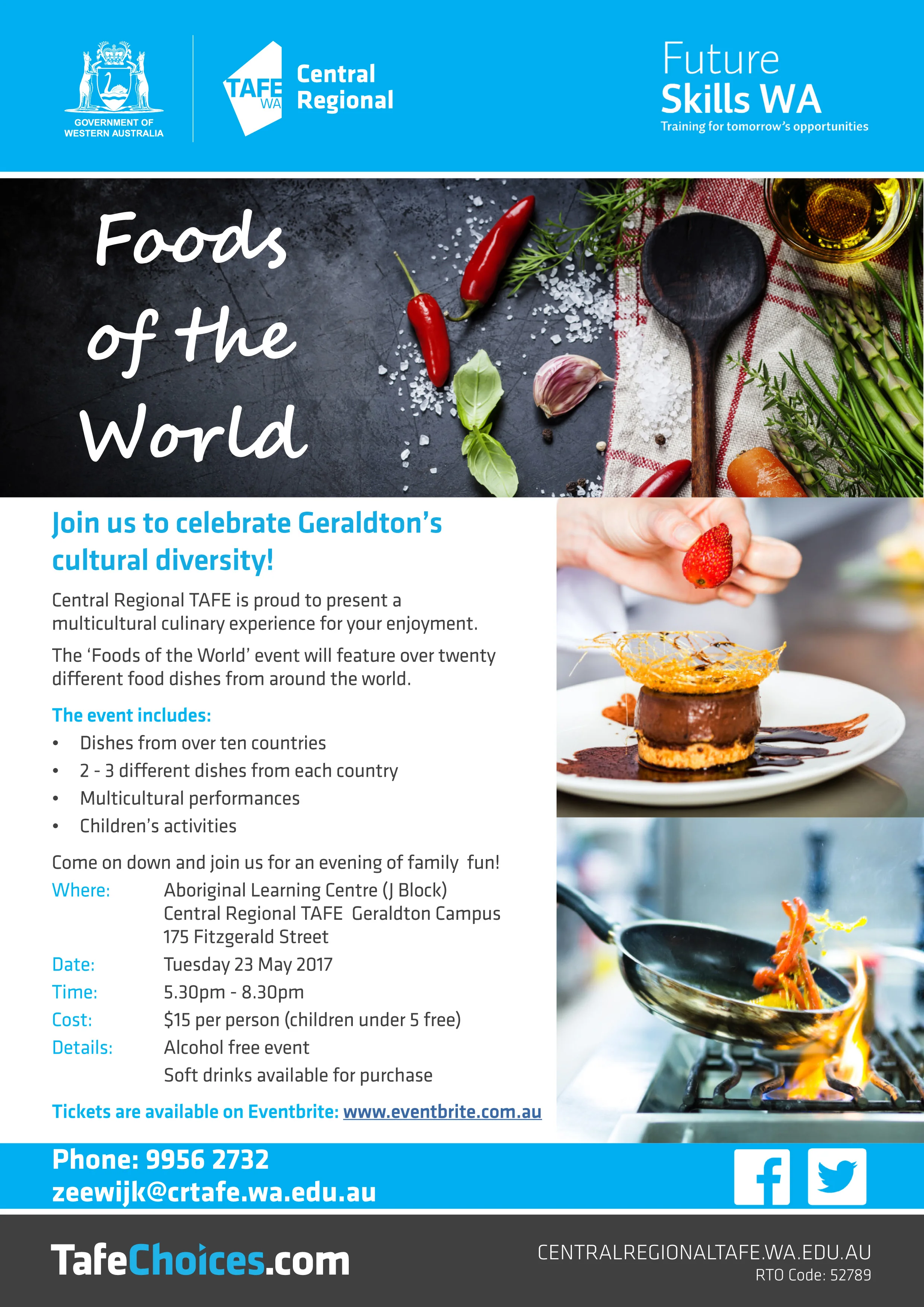 Central Regional TAFE is proud to present a multicultural culinary experience for your enjoyment.
