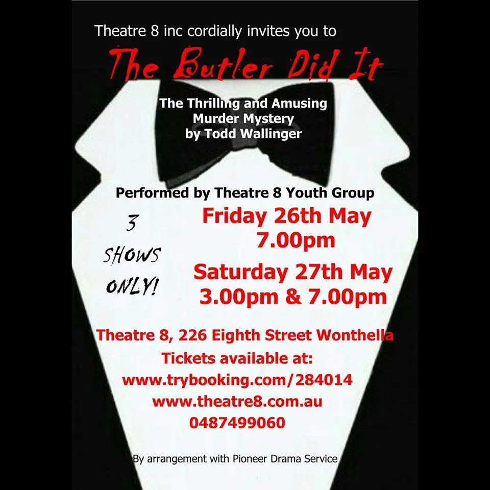 When it comes to solving murder mysteries, it’s always the one you least suspect! The very proper butler Jenkins and the fiery Cockney maid Sarah Jane are preparing the Covington household for a visit from Edwina Corry, the world’s greatest mystery author and friend to Lady Miranda and Colonel Covington. Other guests arriving include Lady Covington’s feisty old mother, their high-flying daughter Kat, their chatty priest who doesn’t know when to quit and the caddish, eavesdropping neighbor boy Trevor. Things are soon thrown into confusion, however, when Trevor is found stabbed to death in the kitchen. On her arrival, Edwina eagerly launches an investigation into the murder. Unfortunately, the evidence is stacked against poor Jenkins from the start, and when the bloody knife is found in his pocket, the other members of the household tie him to a chair and call the police. The only problem? Jenkins didn’t do it. And now he’s got just half an hour to figure out who the real murderer is — while still tied to the chair.