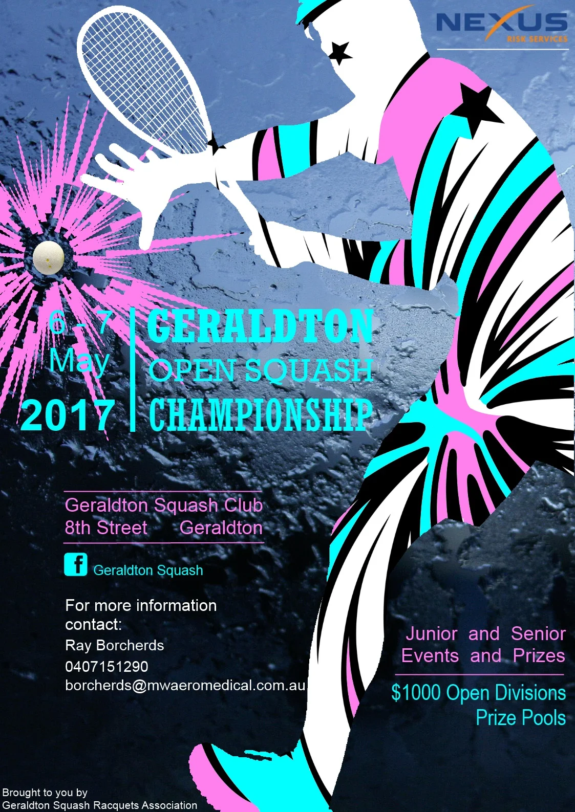 Who to contact for enquiries: Please direct entry queries to Ray Borcherds 0407 151 290, borcherds@mwaeromedical.com.au. Or Geraldton Squash Club on geraltdonsquash@node1.com.au, 9921 5008