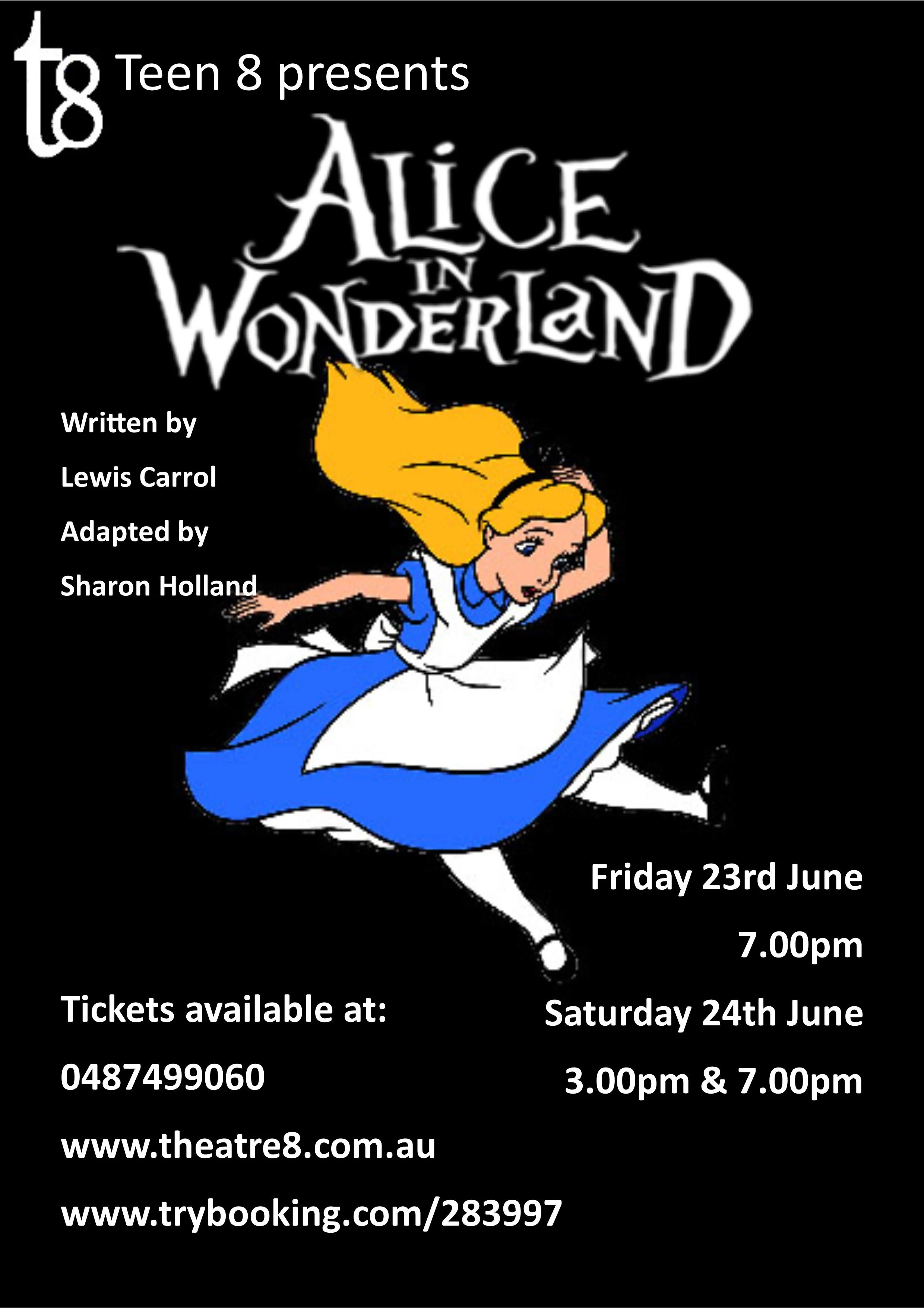 The Intermediate Youth group of Theatre Eight will present the classic story of 'ALICE IN WONDERLAND'Come and see all the favourite characters that Alice encounters on her journey through Wonderland. A show for the whole family. This group of talented young people will present 3 shows Friday 23rd June and Saturday 24th June at 7.00PMand Saturday 24th June