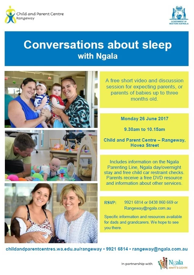 Includes information on the Ngala Parenting Line, Ngala day/overnight stay and free child car restraint checks. Parents receive a free DVD resource and information about other services.