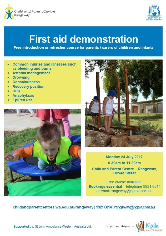 Free creche. Bookings essential. Telephone 9921 6814 or email rangeway@ngala.com.au