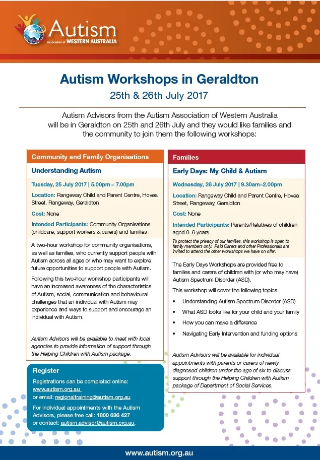 Register online at www.autism.org.au or email regionaltraining@autism.org.au
